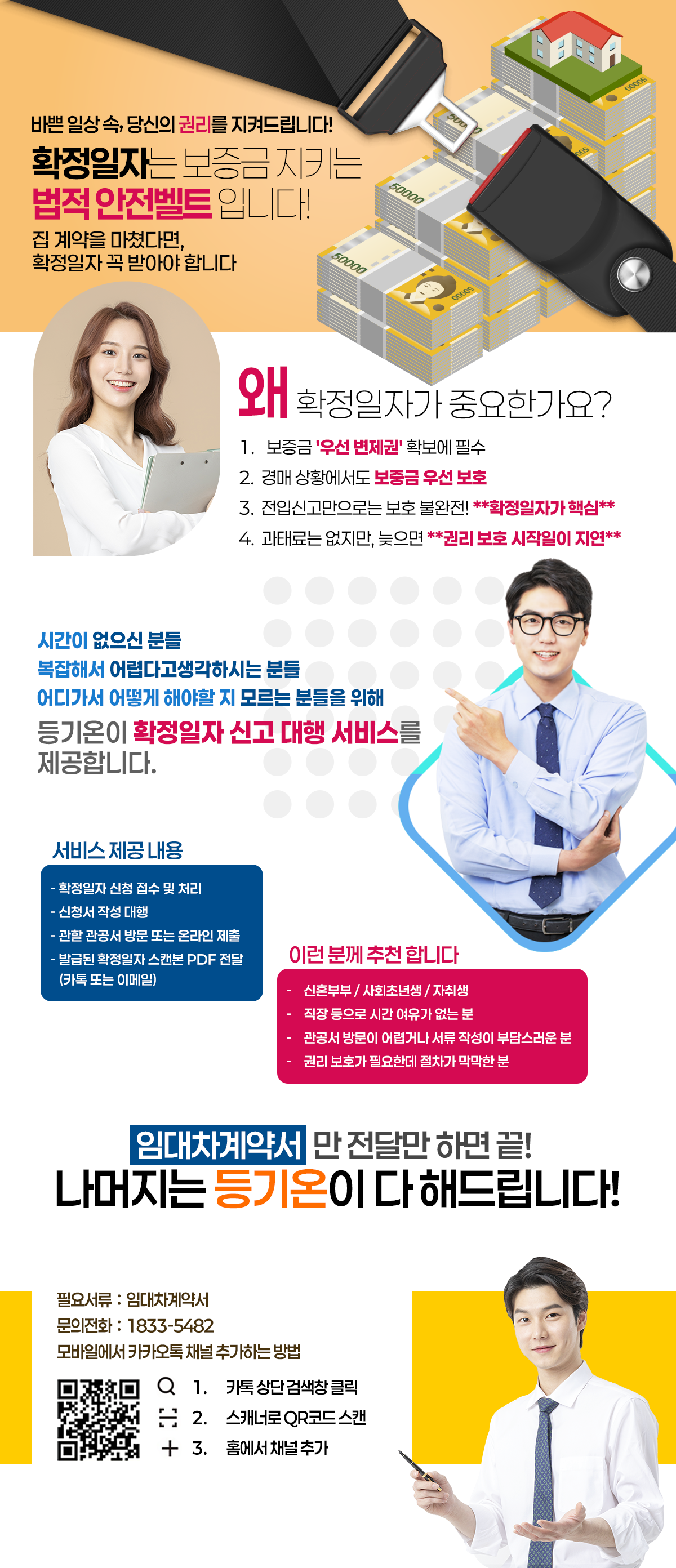 전월세 보증금을 안전하게 지키기 위한 확정일자를 잊지 말고 꼭 신청하세요. 부동산 임대차 계약서 사본 만으로 신청 가능